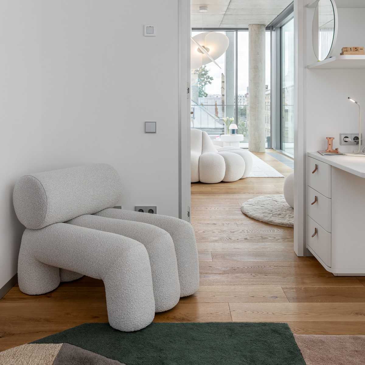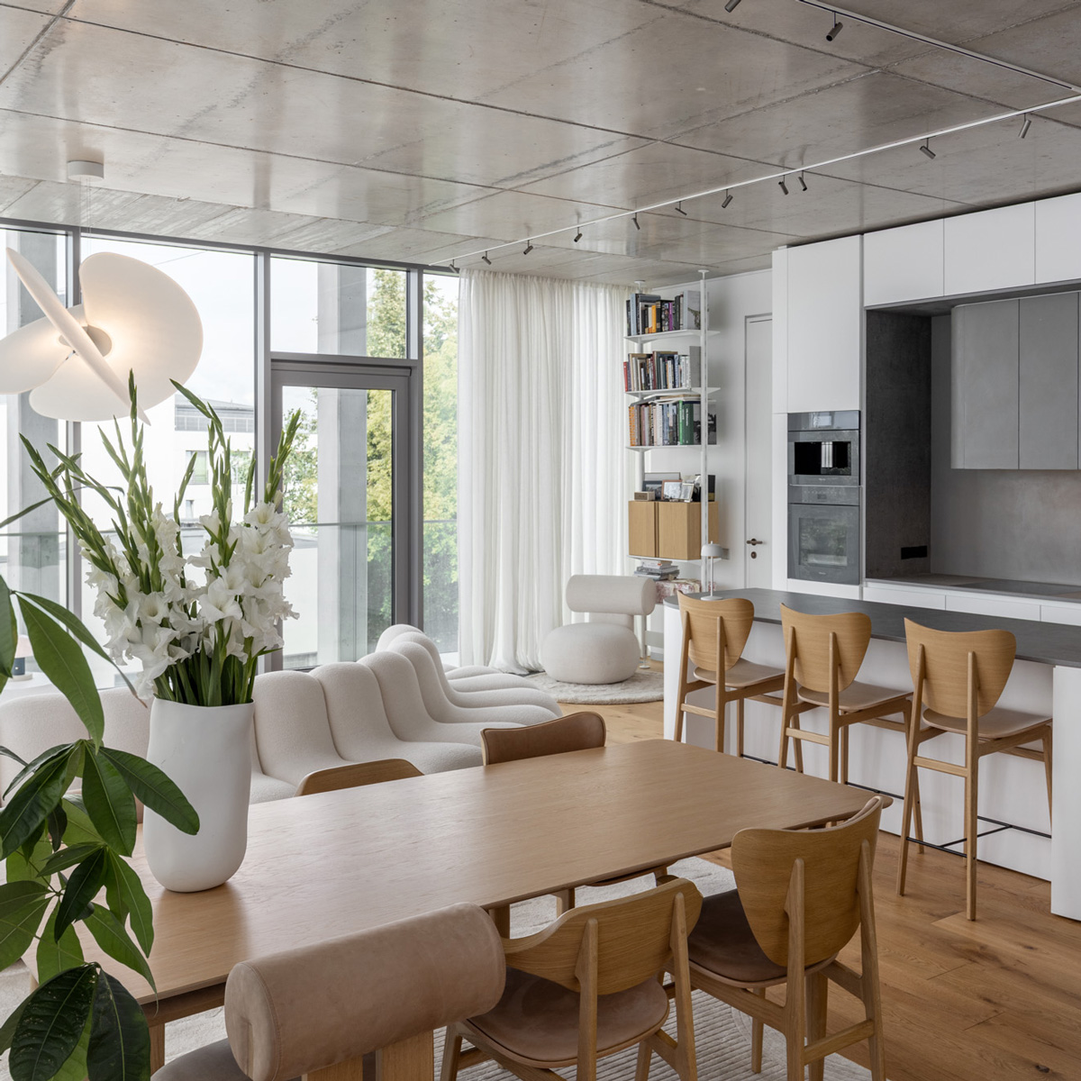 Apartamenti, kas izcilu un izjustu dizainu atklāj ik uz soļa. Gaiša formu bagāta estētika, harmonija un aicinoša harizma vienuviet. Tas ir stāsts, kur dizaina ikonas kļūst par dzīvesstilu.