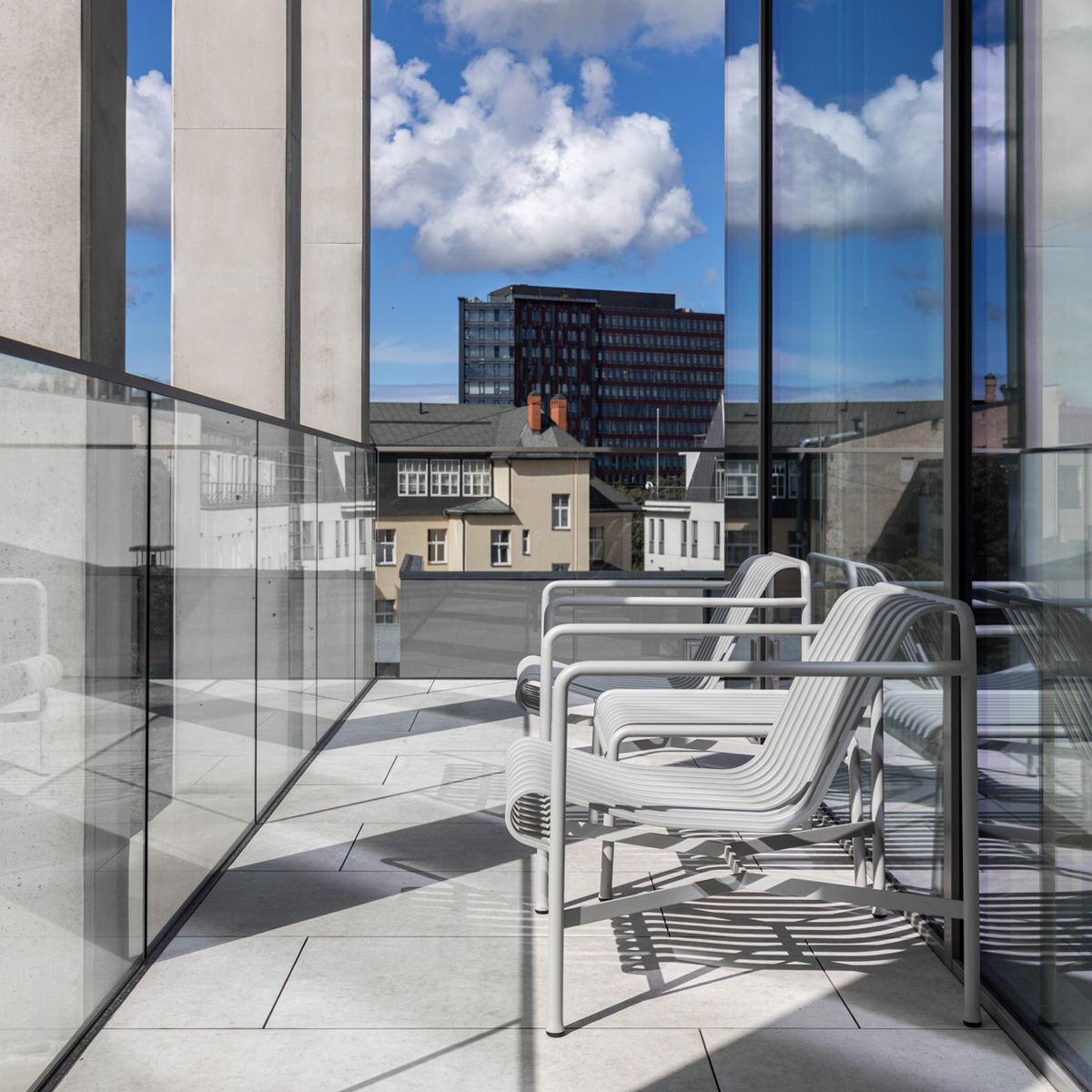 Interjera dizains tapis sadarbībā ar Mokka interjera dizaineri Lieni. Interjeru no salona Mokka papildina: NORR11 sofa, galds, krēsli, bāra krēsli, atpūtas krēsls, kafijas galdiņi, String Furniture plauktu sistēma Pira, 101 Copenhagen gaismeklis un atpūtas krēsls, Luceplan gaismeklis, HAY āra mebeles un Linie Design paklājs.